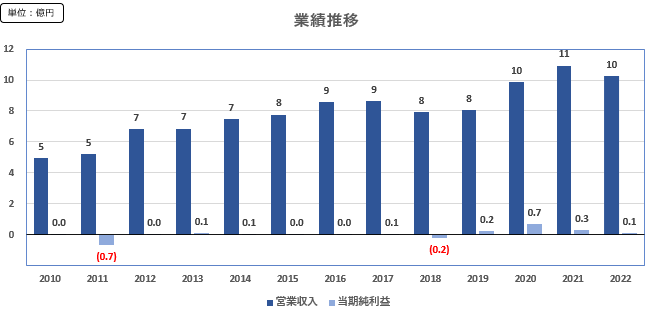 また、2010年以降の13年間で、当期純利益を計上した年度は11回である。