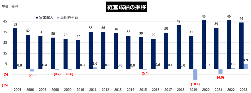 また、当期純利益は、2005年度以降の19年間のうち12年で当期純利益がプラスである。