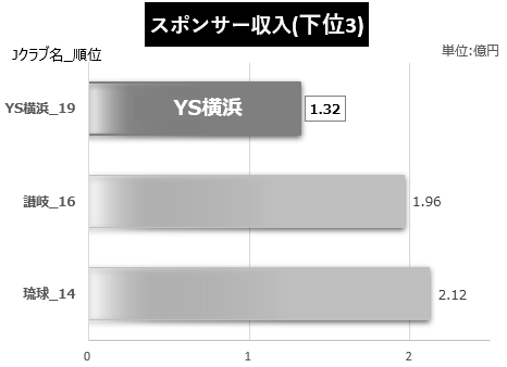 1位は、大宮アルディージャでスポンサー収入が15.7億円(順位は優勝)になった。2024年度における全60クラブで19番目に高額である。