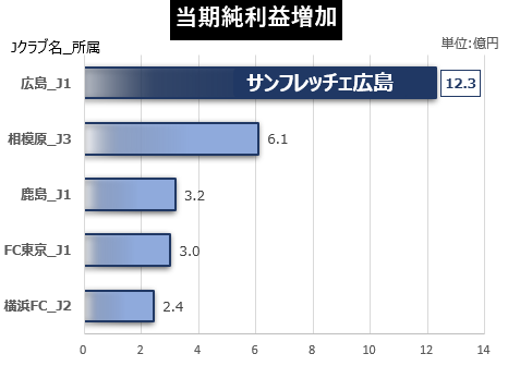 当期純利益が増加したJクラブ
